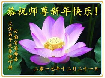 云南省玉溪市通海县大法弟子夫妻俩恭祝慈悲伟大的师尊新年快乐!