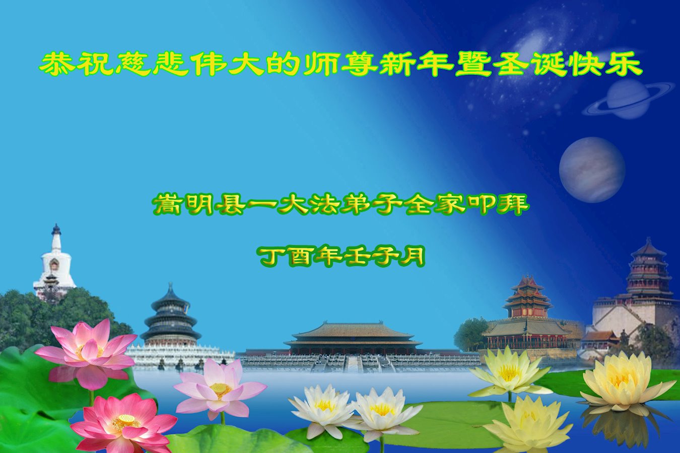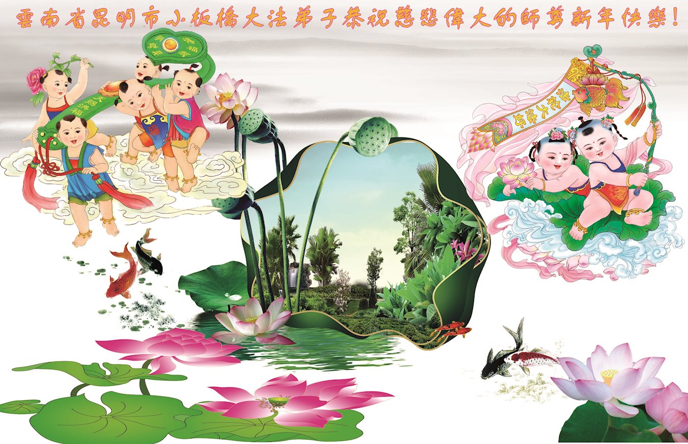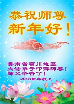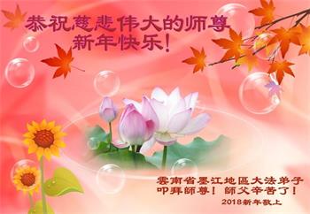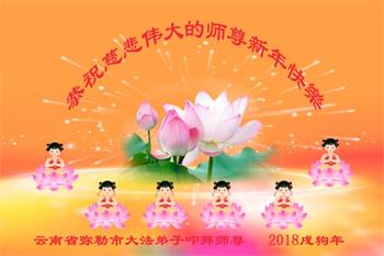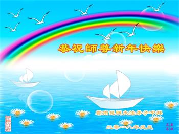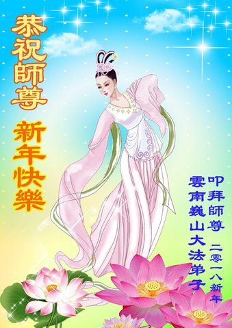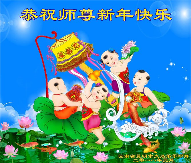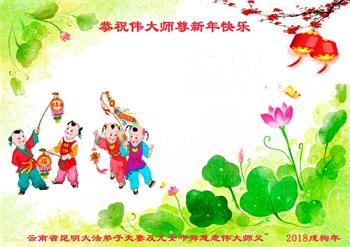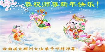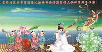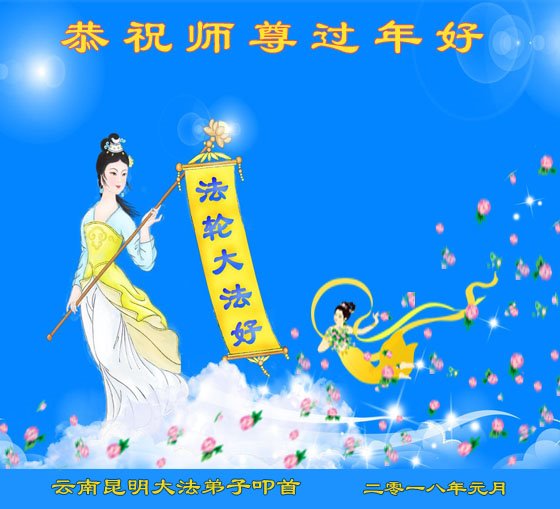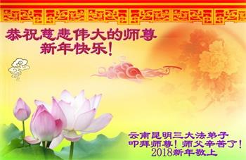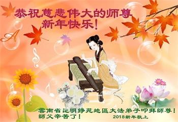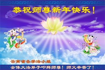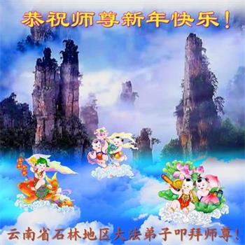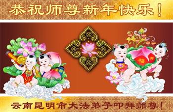 云南昆明大法弟子恭祝慈悲伟大的师尊新年快乐! 云南省大法弟子恭祝慈悲伟大的师尊新年快乐!