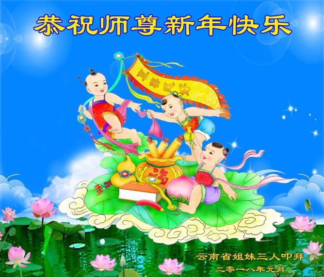 云南省普洱市两姐妹大法弟子恭祝伟大师尊2018新年快乐!