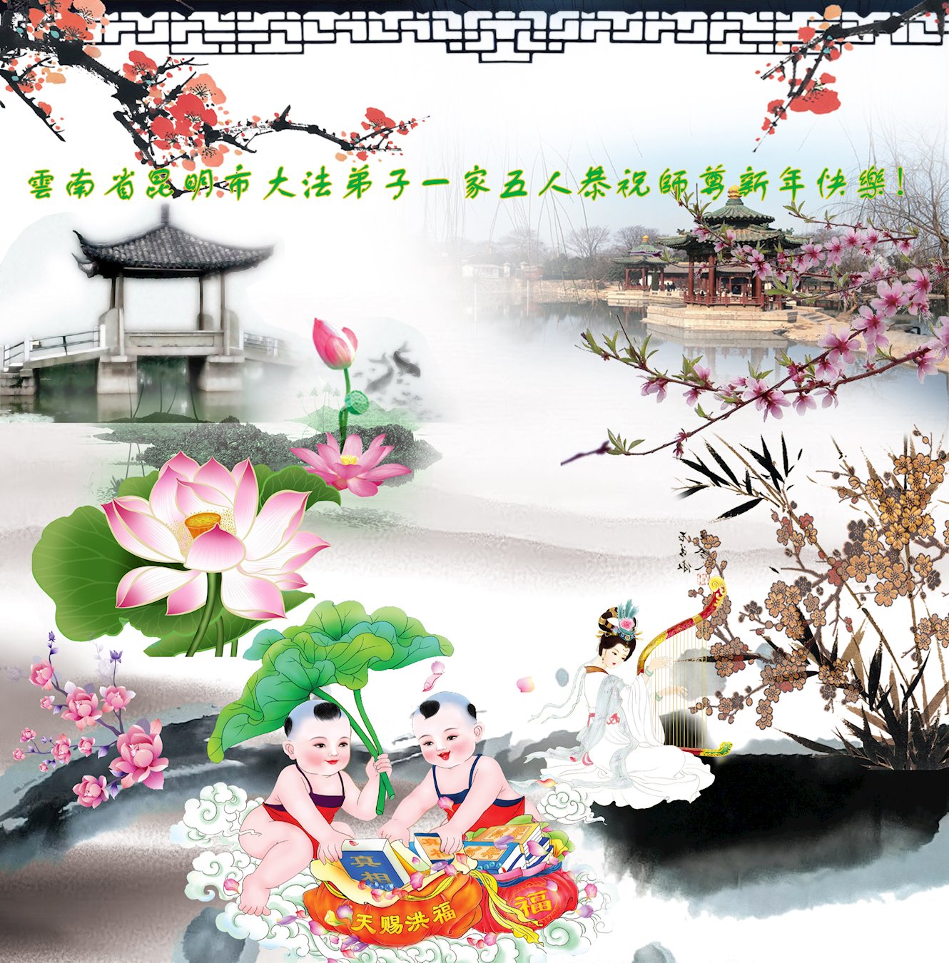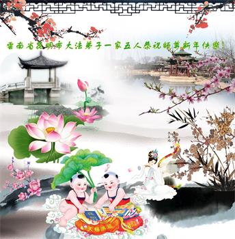 云南省昆明市大法弟子一家五人恭祝师尊新年快乐! 云南省昆明市官渡区大法弟子恭祝慈悲伟大的师尊新年快乐!
