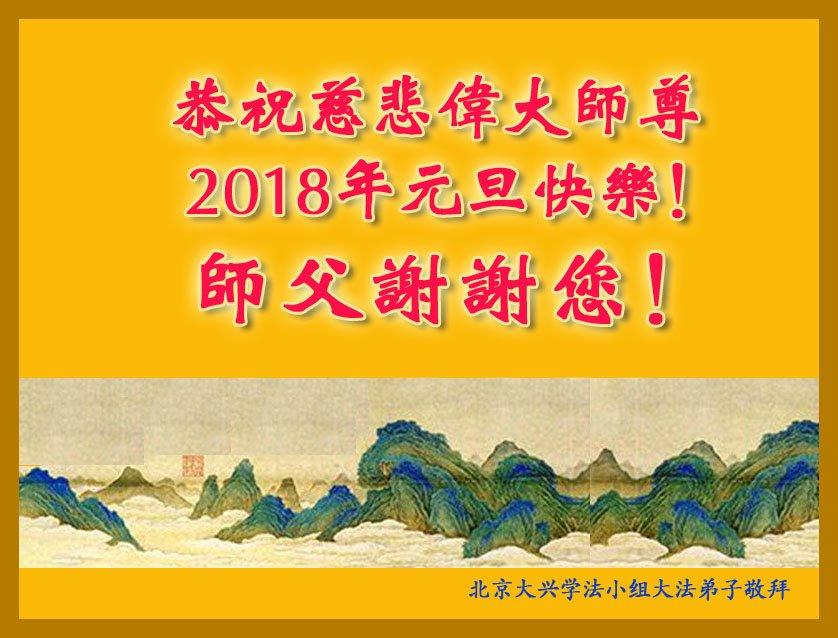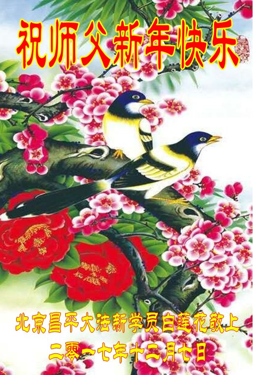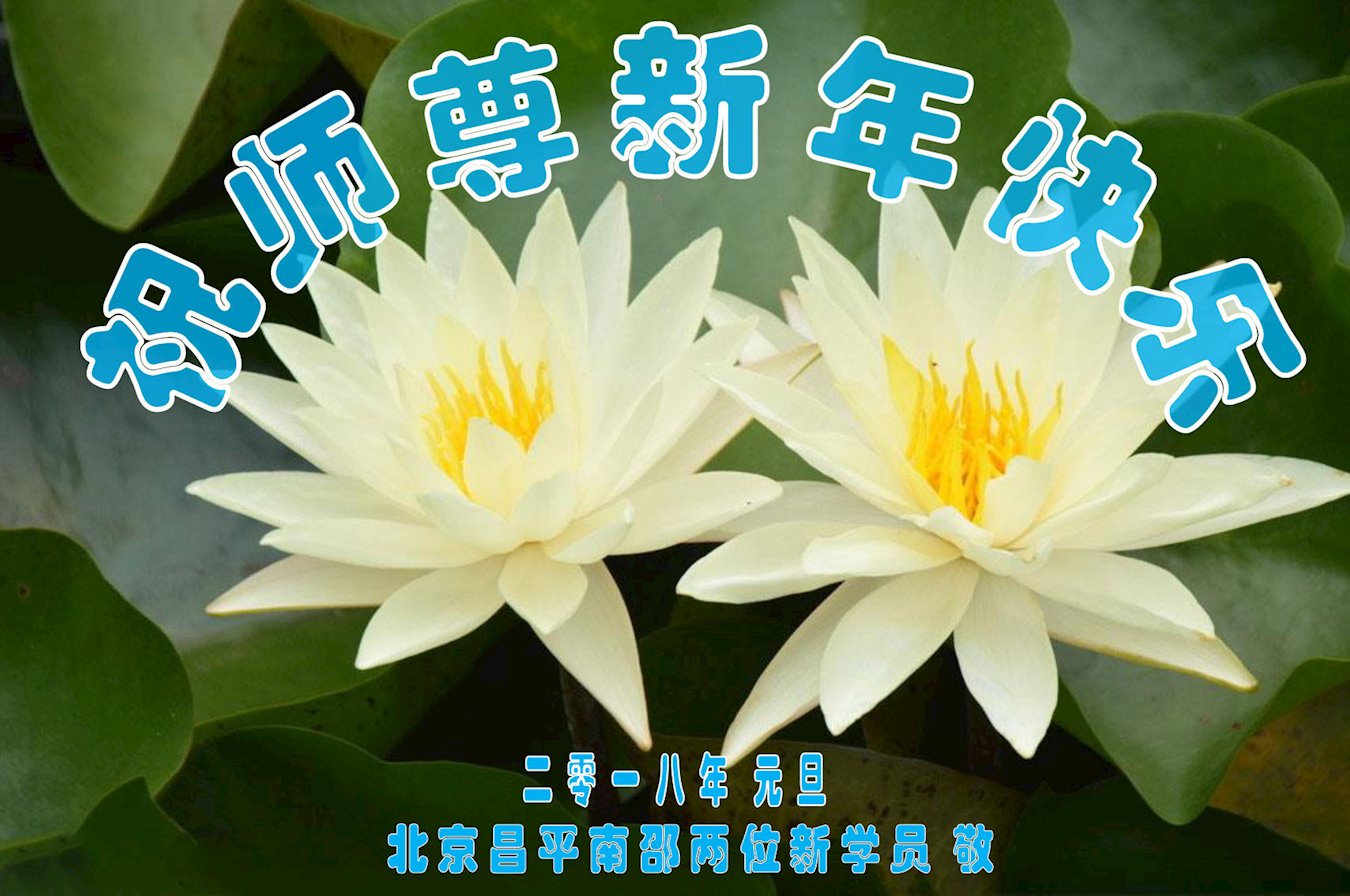 | 【明慧网二零一七年十二月三十日】法轮大法遭受中共残酷迫害十八年了,然而从中共歇斯底里的恶毒诽谤与诬陷之初到现在,走進大法修炼的新人一直持续不断。也许许多人会惊讶,其实原因不复杂。 2018年元旦到来之际,中国大陆幸运走上大法修炼之路的新学员向慈悲伟大的师父致以最崇高的敬意!读读这些新学员的感恩之言,就可以感受到大法的神奇威力和师父的慈悲! 辽宁大法新学员恭祝师父元旦快乐!师父辛苦了! 大法弟子家属及新学员祝慈悲伟大的师父新年快乐!师尊您好,您辛苦了,感恩师尊的慈悲救度!恭祝师尊新年快乐! 新年来临之际,请允许我向您说心里话。我是一名大法弟子的家属,十几年来生活在大法弟子之家,亲眼目睹了我的岳父、岳母和妻子等家人修炼大法后的身心变化和整个家庭的幸福圆容,我心里默默称奇。 可1999年7月以后,只因为修炼法轮大法,他们就遭受到了中共江泽民集团的非人的折磨和残酷的迫害。我看到他们面对苦难那么宁静、祥和;面对恶警那么善良、宽容;面对修炼坚如磐石。我真的不理解了:他们是一群难得的好人,为什么他们有信仰、纯真、善良、堂堂正正、光明磊落,又一心为他、以苦为乐,却要遭受迫害呢?迫害这么多好人是在犯多么大的罪啊! 我想全心全力的保护他们少受伤害,提醒他们注意安全。师尊啊,真的感谢您,感谢您让我认识他们,感谢您让我和他们成为家人。我明白了他们为什么要讲真相、为什么要救度众生。 现在我也得法、学法了!我额头前的白发已经变黑了,我明白了自己今生遭遇的种种苦难不过是为我喜得大法做的安排和铺垫罢了。谢谢您,师尊,请您放心,我会越来越好,按大法的要求做个真正的好人,佛光普照,礼义圆明,我这个新学员让您费心了! 谢谢师尊! 大法弟子家属及新学员敬上 山东省高密市乡村大法新学员恭祝慈悲伟大的师尊新年快乐!慈悲伟大的师尊您好!恭祝师尊元旦快乐! 我是一个新得法的大法弟子。我以前有腰椎盘突出,经常痛的走不了路。看过很多医生,利用过偏方,甚至连附体也都用过,但都没有好,反而更加严重。有时躺下或坐下就起不来了。我才31岁,我不想让剩下的人生都躺在床上。 我的母亲是一名老大法弟子,她经常劝我修大法。可我一直当成耳旁风。就在我走投无路时,我决定走入大法修炼。 我以前只是知道大法好,就是不想修。没想到一旦走入大法修炼竟然是如此美好!我不但身体变好了,以前的坏毛病改掉了,我的心身都感受到了大法的超常。 我和家人感谢师尊的救度洪恩! 弟子跪拜师尊! 黑龙江省哈尔滨市双城区一老年新学员恭祝师父新年快乐!感谢恩人李大师 年岁刚过古稀, 身患癌症绝疾。 没有灵丹妙药, 更无回春良医。 天降洪福大法, 坚修六月有余。 一切病症均消, 恢复健康痊愈。 功归大法的回天力, 感谢救人的李大师。 哈尔滨市双城区一位老年新学员敬上 2017年12月16日 辽宁省大连三位八十多岁新学员恭祝慈悲伟大的师尊元旦快乐!我们心中感恩不尽,让师尊操心太多,我们的生命是大法造就的,是师尊给我们延长来的,今后我们一定每天坚持炼功学法,决不掉队,在新的一年修好自己,请师尊放心。 再次感恩慈悲伟大的师尊!恭祝师尊新年快乐!合十 三位新学员叩拜师尊 北京大法新学员恭祝师尊新年快乐!我是大法新学员,感恩的话说不出来,就是感恩,感恩师尊的慈悲救度。 北京大法新学员 叩首 成都一学法小组大法弟子和新学员恭祝慈悲伟大的师尊新年快乐!感谢师尊对众生的慈悲救度! 感念大法的浩荡洪恩! 做好三件事 一年又一年 弟子把师念 回首修炼路 师把徒儿牵 一年又一年 誓约记心间 做好三件事 兑现来世愿 一年又一年 正法到人间 精進又实修 圆满随师还 弟子叩拜师尊! 合十 成都一学法小组大法弟子和新学员敬上 北京昌平大法新学员祝师父新年快乐!感谢师父洪恩!北京昌平大法新学员祝师父新年快乐!感谢师父洪恩! 祝师父新年快乐!感谢师父洪恩! 北京昌平大法新学员敬上 辽宁大法新学员恭祝师尊元旦快乐!江苏省南京市大法新学员恭祝师父元旦快乐!四川成都南门学法小组大法弟子及新学员恭祝慈悲伟大的师尊新年快乐!师尊您辛苦了!弟子叩谢师尊的救度之恩,千言万语汇成一句话:“法轮大法好, 真善忍好”! 众生得救把师颂 师尊正法救苍穹 《·九·评*》利剑斩红龙 三:退.日众近三亿 众生得救把师颂 成都南门学法小组大法弟子及新学员叩拜师尊 二零一七年十二月二十一日敬上 湖南长沙大法新学员恭祝伟大的师尊新年快乐!湖南长沙大法新学员敬贺 北京大兴学法小组大法弟子恭祝伟大师尊2018年元旦快乐!2018元旦到来之际,北京大兴学法小组大法弟子向慈悲伟大的师尊致以最崇高的敬意!恭祝慈悲伟大师尊新年快乐!我们无比感恩慈悲伟大师尊的慈悲救度。 师父您辛苦了!师父谢谢您! 2017年的10月底,我们学法小组一位新学员家中的玻璃窗外,开出了一簇29朵圣洁的优昙婆罗花。这殊胜的景象鼓舞着我们在返本归真的正法修炼路上更加勇猛精進。 敬拜!合十 山东省青岛市大法弟子所有的新学员恭祝慈悲伟大的师尊新年快乐!我们是青岛市的大法新学员,要在个人修炼和助师正法修炼的同时,兑现誓约,做好三件事,跟师尊回家! 青岛市所有大法新学员敬拜 四川达州开江大法新学员恭祝慈悲伟大的师父元旦快乐!达州开江大法新