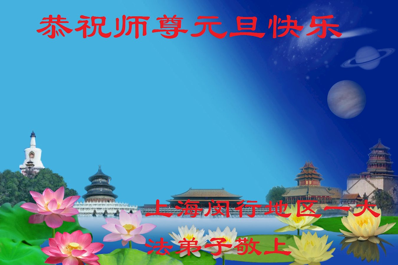 上海闵行地区一大法弟子恭祝师尊元旦快乐!