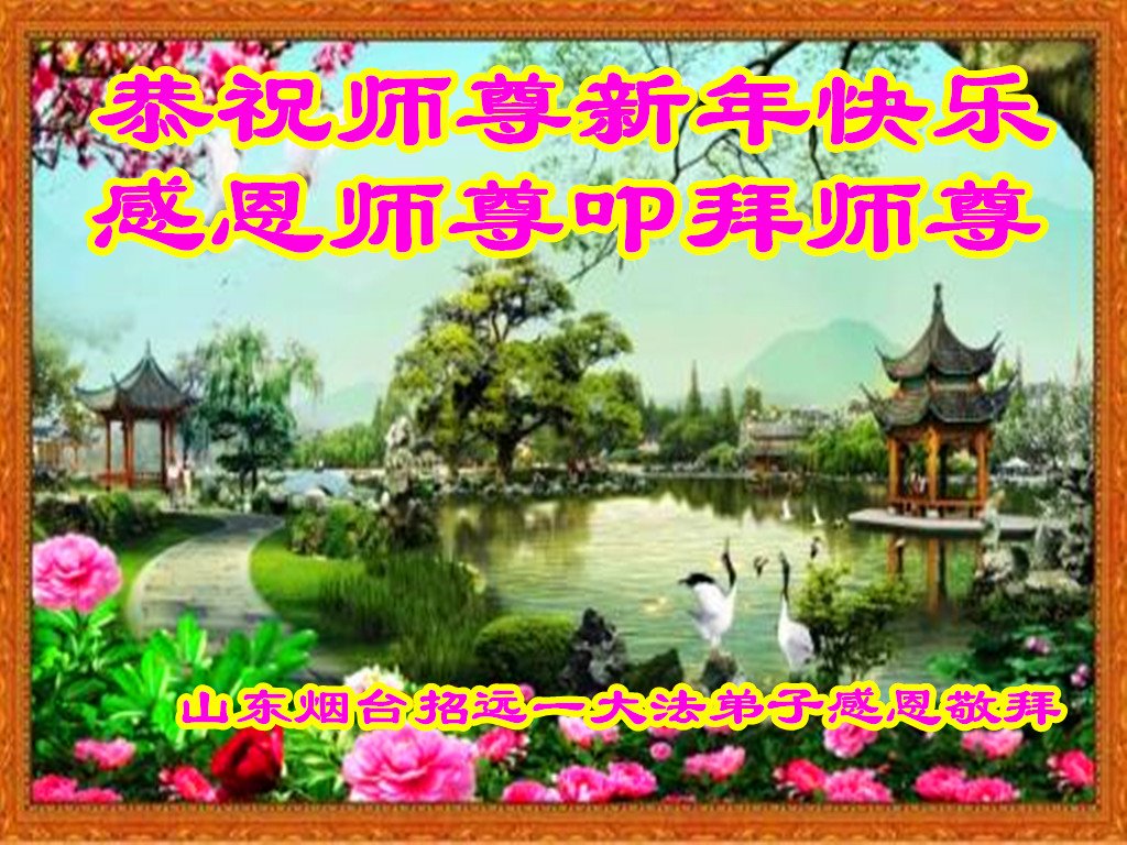感谢师恩浩荡,盼愿师父早日回到中国与大法弟子见面。 跪拜合十 山东省烟台市福山区夫妻大法弟子祝伟大的师尊新年快乐!