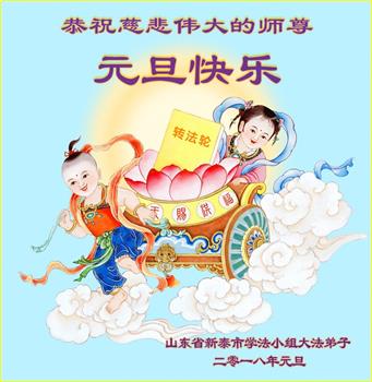 福山区夫妻大法弟子祝伟大的师尊新年快乐!我们夫妻二人一定共同精進做到多救人才是对师尊好的回报。 山东省聊城市临清市大法弟子:二零一八年元旦向伟大的师尊问好!