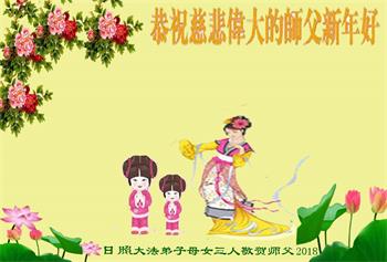 山东聊城一修炼家庭大法弟子衷心祝贺伟大的师尊二零一八年元旦节日愉快!我们在大法法理指导下,正念做好三件事,做好小资料点的运作,唤醒着世人。 山东聊城一修炼家庭大法弟子感谢师父救度之恩。 山东省烟台市海阳市母子大法弟子二人恭祝慈悲伟大的师父新年快乐!