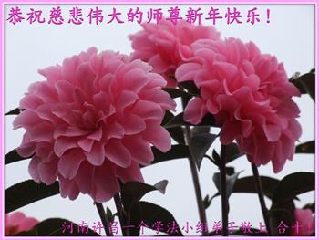 恭祝伟大慈悲的师尊新年快乐!在新的一年我们会学好法修好自己,互相配合做好三件事救度众生。让师尊多点温馨、少点操劳。 河南周口沈丘大法弟子恭祝师尊新年快乐!