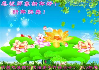 在新年到来之际向师尊问好,您辛苦了。我们争取在有限的时间里多救人,圆满随师还。 河南商丘地区全体大法弟子恭祝慈悲伟大师尊元旦快乐!