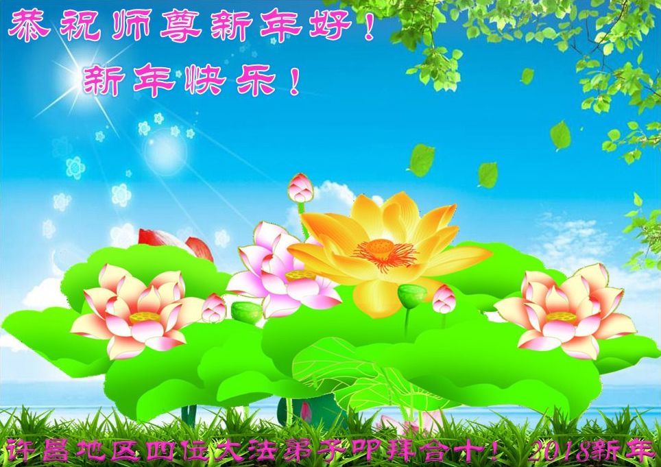 2018年元旦到来之际,平顶山市大法弟子向慈悲伟大的师父问好,弟子只有时时事事向内找,修好自己,才能救度了世人众生,才不辜负师父的慈悲救度。 河南许昌地区四位大法弟子恭祝慈悲伟大的师尊新年好!