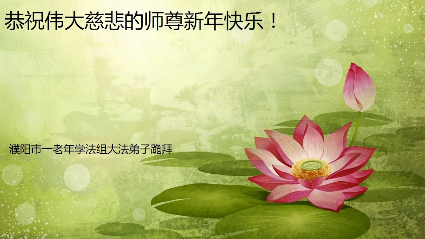 在新的一年里,我们做好三件事,不辜负师尊的教诲与慈悲救度! 许昌一学法小组 弟子 河南濮阳市一老年学法小组全体大法弟子恭祝伟大慈悲的师尊新年快乐!
