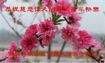 潍坊市峡山区全体大法弟子恭祝慈悲伟大的师父新年快乐! 山东省潍坊市峡山区大法弟子恭祝慈悲伟大的师父新年快乐!