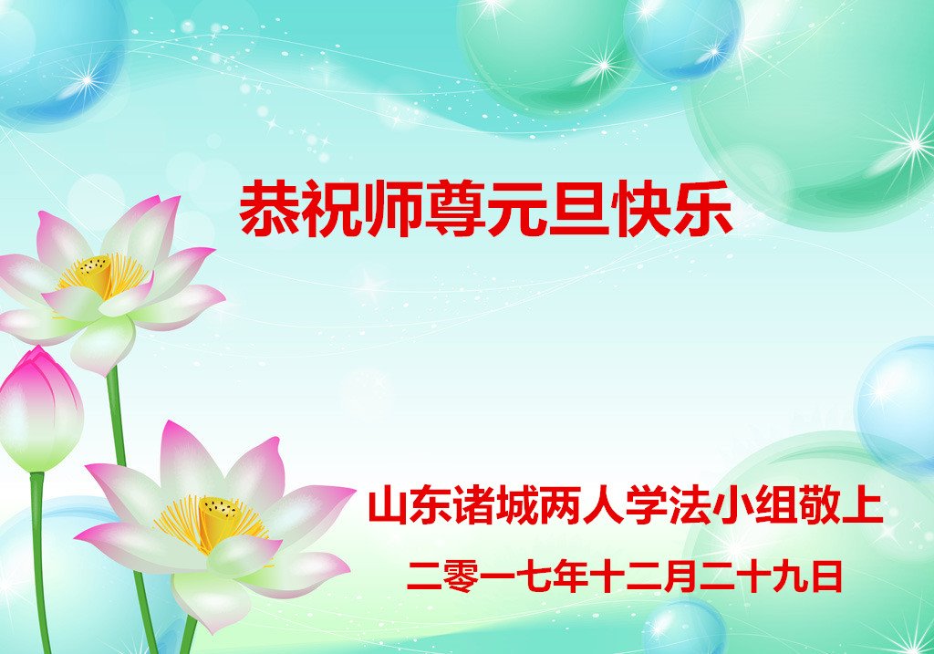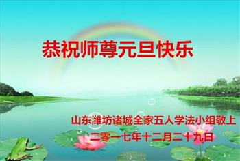 山东潍坊高密市大法弟子敬上 2017年12月27日 山东潍坊诸城两人学法小组恭祝师尊元旦快乐!
