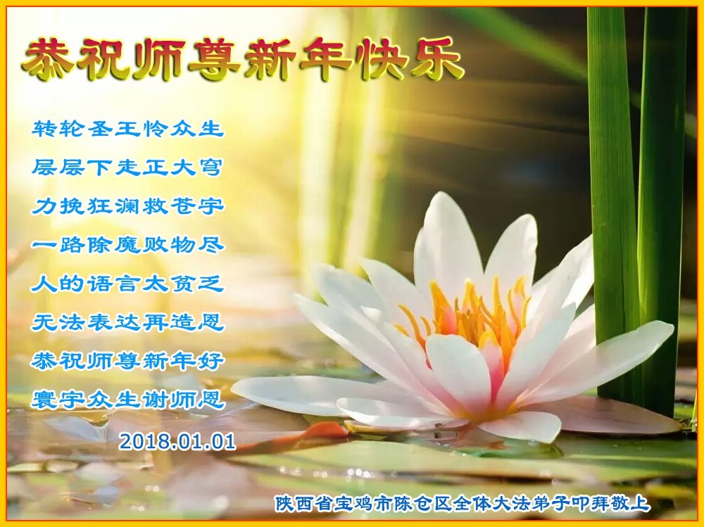 陕西省礼泉县大法弟子恭祝师父新年好!师父辛苦了! 陕西省宝鸡市大法弟子恭祝师尊2018新年快乐!