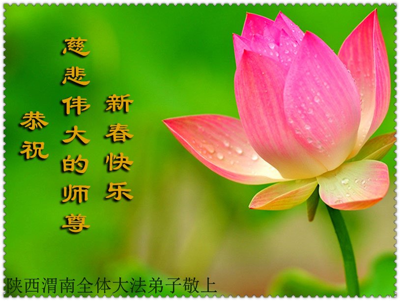 师父好,师父您辛苦了! 恭祝师尊元旦快乐! 在元旦来临之际,弟子叩谢师尊! 在新的一年里弟子要加倍努力做好三件事,不辜负师尊慈悲救度。 陕西汉中市城固县大法弟子敬上。 陕西宝鸡一学法小组大法弟子恭祝师尊元旦快乐!