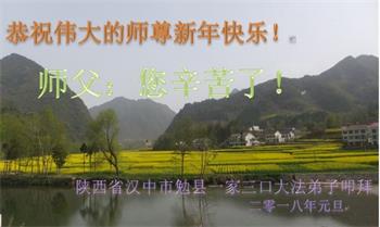 陕西省汉中市勉县一家三口大法弟子恭祝师尊新年快乐!