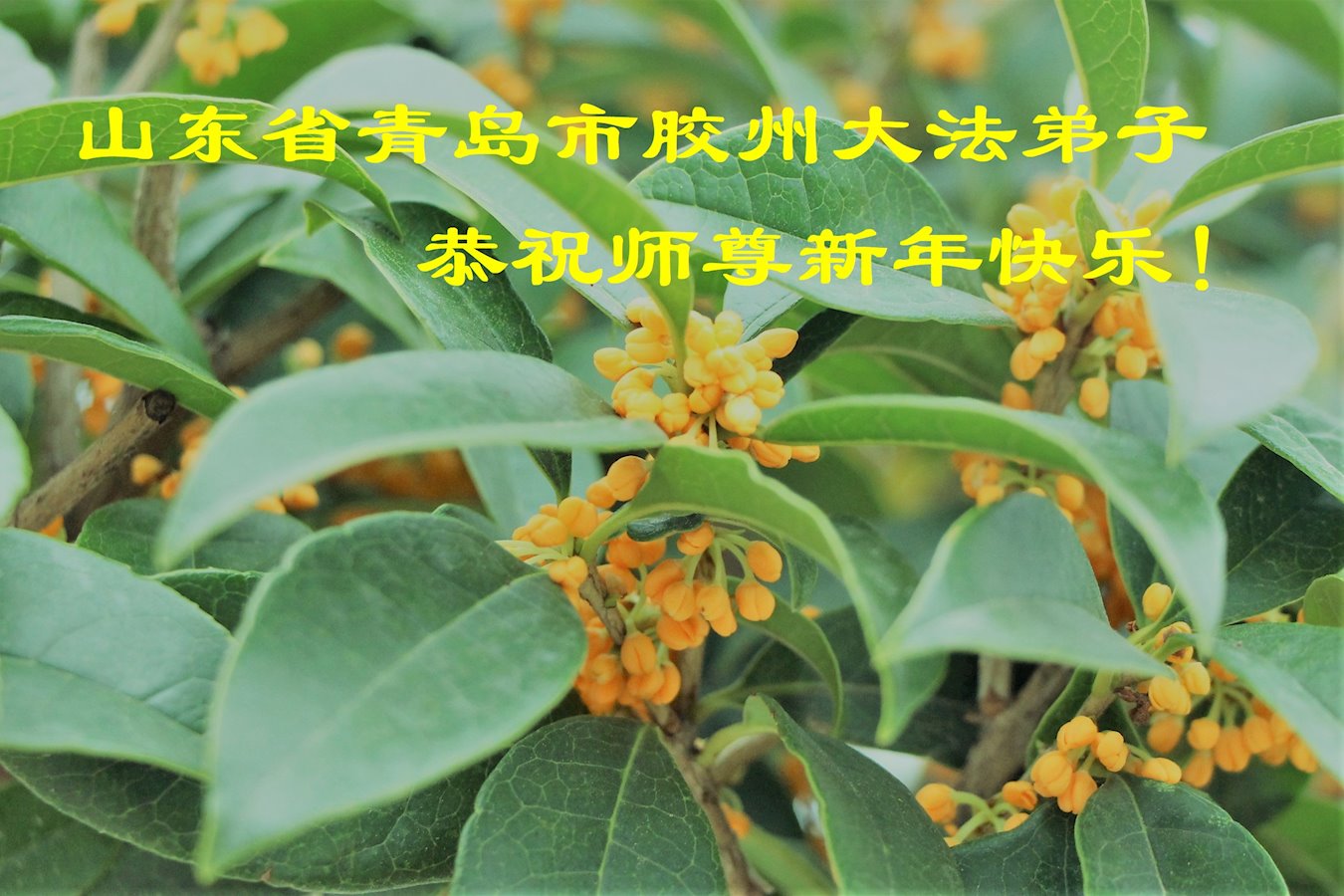 师父好:祝师父新年快乐!师父辛苦了,弟子非常想念师父,我们是山东省青岛市胶州市学法小组,同祝师父新年快乐!全世界的大法弟子是一个整体,发出强大的正念,救度更多世人与众生,我们是一朵朵小花,感恩师父十几年来对弟子的慈悲救度。无以言表,必用实际行动感恩师父,我们一定做好师父要求的三件事,勇猛精進,精進,精進,再精進,圆满随师把家还。 胶州市学法小组 山东省青岛三位大法弟子恭祝师尊新年快乐!