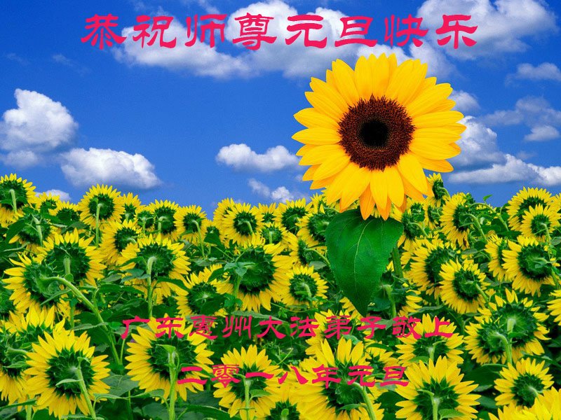 二零一八年新年即将到来,弟子祝愿师尊新年快乐!师尊用巨大的承受为众生得救延长时间,弟子一定走好师尊安排的修炼之路,跟随师尊返回家园。 深圳大法弟子 合十 叩谢师恩 广东省惠州市惠东县全体大法弟子恭祝慈悲伟大的师尊新年快乐!