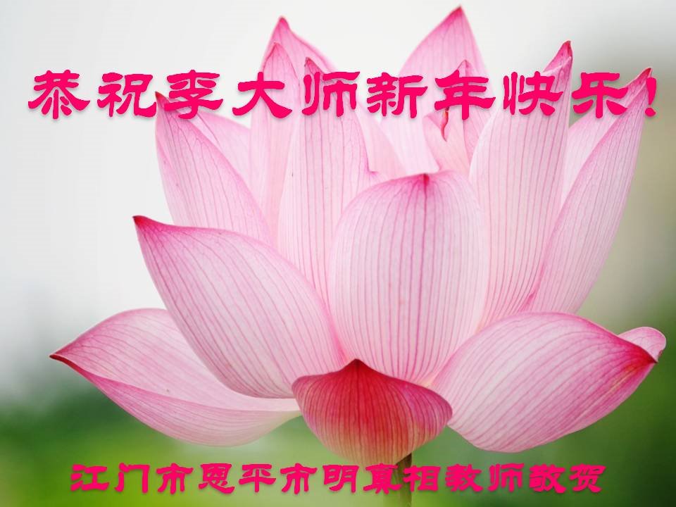 师尊好!恭祝师尊元旦快乐! 回首自己二十年修炼路,感恩师尊的慈悲保护。弟子要多学法,学好法,向内找,修炼如初。愿师尊少一份操劳,多一份欣慰。 广东惠州大法弟子敬上 广东省江门市恩平市全体大法弟子恭祝师尊新年快乐!