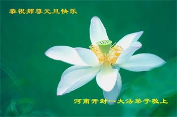 一年一度新年到 慈悲师尊把心操 保护弟子承受难 弟子无言心知明 难以报答师尊恩 只有精進再精進 牢记使命不能忘 弟子时时记心中 愿师尊新年快乐! 河南开封一大法弟子敬祝师尊元旦快乐!