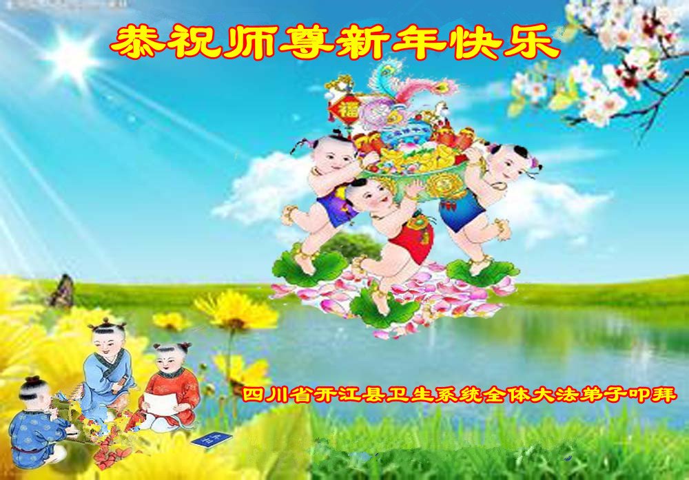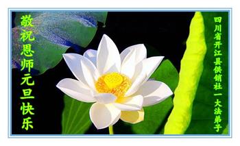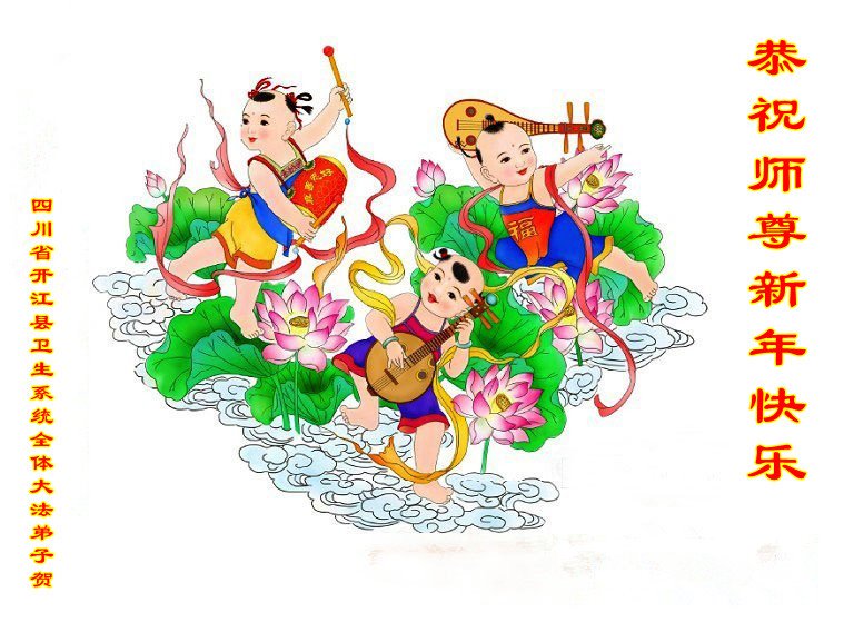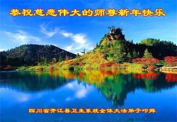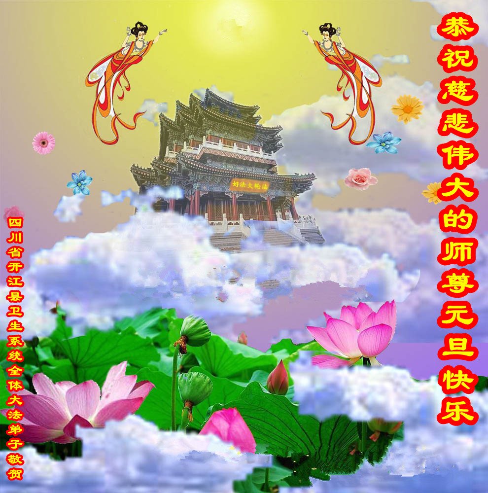 四川省达州市开江县卫生系统一大法弟子恭祝慈悲伟大的师尊新年快乐!