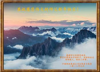 二零一八年元旦来临之时,请接受建设银行系统全体大法弟子的感恩与祝愿:感恩师父慈悲苦度,恭祝师父新年快乐!弟子们在新的一年里一定勇猛精進做好“三件事”,谢谢恩师! 建设银行系统全体大法弟子跪拜 黑龙江省农垦红兴隆农垦分局大法弟子敬上
