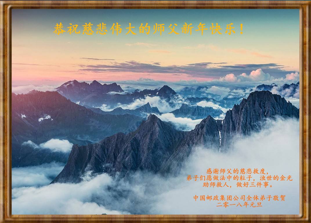 恭祝伟大慈悲的师尊新年快乐!在新的一年我们会学好法修好自己,互相配合做好三件事救度众生的各种项目。让师尊多点温馨、少点操劳。 中国邮政集团公司全体大法弟子恭祝师尊新年快乐!