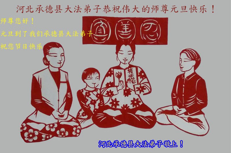 恭祝师尊新年快乐! 大法必成!大法弟子必圆满!弟子在新的一年,要更加精進实修,做好三件事,早日随师还。 河北承德隆化县全体大法弟子敬上 河北蔚县、下花园、涿鹿、山西广灵和北京大法弟子恭祝师父元旦快乐!