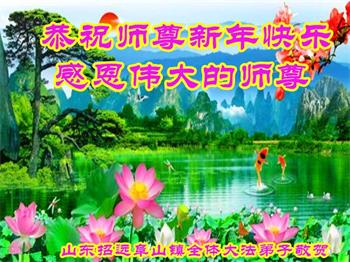 山东烟台一学法小组全体同修值此新年来临之际向慈悲伟大的师尊新年问候