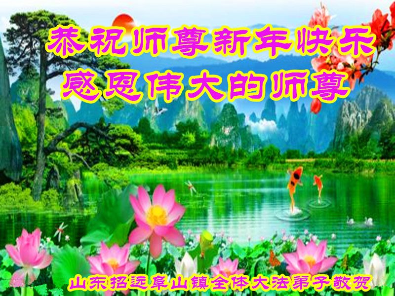 山东烟台招远阜山镇全体大法弟子恭祝慈悲伟大的师父新年快乐!