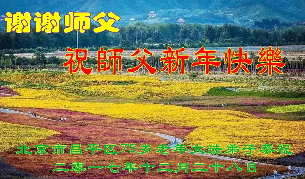 北京市昌平区75岁老年大法弟子恭祝师父新年快乐! 师父好!我是一位75岁的老年大法弟子,2018年快到了,我祝慈悲伟大的师父新年快乐!师父救了我们全家人的命,感谢师父慈悲救度!谢谢师父!祝师父新年快乐!永远跟师父修炼回家。 北京市昌平区75岁老年大法弟子恭祝 北京一线真相小组大法弟子恭祝师尊新年快乐!