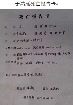 | 【明慧网二零一七年二月十五日】(明慧网通讯员黑龙江报道)一九九九年七月二十日,江泽民一意孤行发动迫害法轮功的运动,铺天盖地的散布谎言,污蔑抹黑法轮功,欺骗了中国乃至世界善良的民众。“1400例”就是当时江氏集团炮制的谎言。 1999年12月,中共江氏集团炮制假例证,重判李昌等四名原法轮功研究会学员。“例证”之一是黑龙江省讷河市的癌症患者辛凤琴。辛凤琴伪案还被录入对李昌等人的非法判决书的证词部分。 辛凤琴伪案真相 这个栽赃案是怎样出笼的呢?一九九九年四月二十五日以后,如全国一样,讷河市公安局动用了很多便衣警察开始暗中监视所有的法轮功炼功点,偷偷地记录着天天到炼功点炼功人的姓名及人数。将炼功人的名字登记入册,而且还各处收集诬蔑法轮功的所谓证据。他们的要求是,无论是继续炼的,不炼的,活着的还是死去的,都一一登记造册,上报市政法委、公安局。在这个指令下,一九九八年死亡的辛凤琴的名字被上报入册。 辛凤琴,女,四十三岁,农民,原住黑龙江省讷河市友好乡,一九九八年十月被诊断为患口腔癌,同年十二年二十一日死亡。 当时很多人都知道辛凤琴一得病就被诊断是口腔癌晚期,她四处寻医问药。内蒙古莫力达瓦旗一个熟人介绍她炼法轮功,她似信非信,由于晚期癌症的痛苦折磨,她根本没心思去炼功,她抓紧一切时间到处求医救治。等她到讷河市人民医院治疗时,由于病情严重,医药已无回天之力,辛凤琴从患病到死亡前后只有一个多月的时间。 黑龙江省政法委专门迫害法轮功的“六一零”非法组织抓住这个案例,要把它做成伪案,层层施压。讷河市政法委、“六一零”、公安局、友好乡的头头们白天黑夜的威逼死者辛凤琴的丈夫及女儿。他们先是把死者的女儿接到讷河市招待所,包吃包住,在诱导和强大压力下,辛的女儿在讷河市电视台面露面说,她母亲患“口腔炎”,因炼法轮功,“不让吃药而死亡”,挑起民众的反感与仇恨。 另一方面,讷河市政法委副书记于鸿雁(已遭报死亡)要死者辛凤琴的丈夫姜正安去北京,在对法轮大法研究会的四名成员非法审判大会上作伪证证人。 接着于鸿雁又把第二证人的目标锁定在辛凤琴看过病的讷河市医院。该院院长王振生火速执行命令,找到当时给辛凤琴看过病的江医生,说安排她去北京旅游,前提是得接受中央电视台采访,在一个特别节目里说一句话,就说辛凤琴是口腔炎,炼法轮功,因拒绝吃药造成死亡。江医生听明白情况后,就推说家里有孩子正在读高中,脱不开身。事后一些同事在一起议论这个事时她说,宁可不去旅游,咱可别丢那个人去(做假证)。 院长王振生见江医生不肯说假话,又找到住院处心内科医生张晓伟。张晓伟是个刚刚毕业参加工作的年轻医生,和患者辛凤琴根本就不认识。她听了院长王振生的要求,立刻就答应了。当时张晓伟放下电话后还很高兴地对同事说:正好没去过北京呢,借机会去北京溜达溜达。 这样,于鸿雁带着死者辛凤琴的丈夫姜正安与医生张晓伟去了北京。到北京后,一行人被领到一个秘密住处,说为了保护证人的安全,不许外出,不准随便活动,并有记者详细交待他们如何回答问题,实际上这一行人是被软禁了,人到那不想说都不行了。于是在晚上七点的央视新闻联播中,播出了被精心编造的谎言,很多人都奇怪地看到,宣布证人上庭时,讷河市医院医生张晓伟是低着头、猫着腰走向证人席的。等到张晓伟回到医院,有人问起作证和旅游的事,她闭口不谈,心情很沉闷,表情也很不自然。 医生张晓伟没有接触过患者辛凤琴,她的“因延误治疗而导致死亡的事实”的证言不言而喻是编造出来的。辛的主治医生拒绝去北京的审判会当庭作证,更没有书面证言证实她的患者是延误治疗导致死亡。 这就是上个世纪末,中共江泽民政治流氓集团动用整部国家机器制造恐怖气氛、利用伪造的证据冤判法轮功学员,诬陷抹黑法轮功的冤案的部分事实。 参与辛凤琴栽赃案人员遭恶报 于鸿雁、王振生、张晓伟、姜正安及其女儿等配合这次造假的所有人都是江泽民迫害法轮功的受害者。 于鸿雁,男,时年53岁,死前为黑龙江省讷河市政法委副书记。2008年已患胃癌、并发性消化道出血、原发性肝癌、2型糖尿病。死亡时间2009年1月10日。