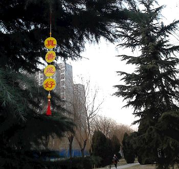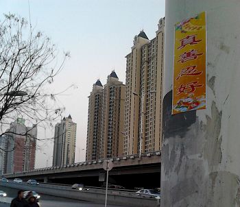 | 【明慧网二零一七年二月十八日】二零一七年正月十五和十六这两天,元宵佳节,是石家庄难得的晴朗天气。石家庄几位法轮功学员在市区街头、绿地、围栏、高树等,张贴和悬挂了百十多个海报、条幅等,告诉人们“法轮大法好”,揭露中共对法轮功的迫害。其中有图文并茂的诉江大海报,有长长的黄色条幅、有玲珑的挂穗,成为传统佳节中一道道亮丽的风景线,吸引了过往行人的目光。 一、正月十五:百姓帮忙 在张贴海报、悬挂条幅的过程中,我们告诉身旁走过、看到真相粘贴的路人“诚念‘法轮大法好’能逢凶化吉、遇难呈祥。”她微笑着冲我们点头,说:“挺好!”很多路人都微笑的看着、念着:“法轮大法好!真、善、忍好!真好!” 有一个条幅没挂好,横着挡在树枝上,同修想摘下来重挂,可是够不着。正好过来一位三、四十岁个子高大、很善良的男子,我们微笑着请他帮忙给摘下来。他还小心的问:“会不会拽坏?”同修告诉他:“不会拽坏!”结果,他一使劲,真的就好好的摘下来了。他看到上面醒目的“法轮大法好”后,没有任何负面的反应。我们谢过他,他很客气的说不用谢。一切都那么自然。 看到一位六、七十岁的老人,手拿着我们挂在树上的大法条幅和福字,从我们后边走过来。就请他再帮我们挂上去,或者还给我们。他不给我们,还说:“不行,我看挺好看的,要挂到家里去。”我们就看他一直在手里拿着“法轮大法好”的条幅和福字,慢慢走远了。 张贴、悬挂的过程中,我们的心非常纯净。身边来来往往经过的路人看到后,也表现的很自然。遗憾的是这一天没有讲真相,劝三:退.。 二、正月十六:心态纯净 配合默契 一个老太太看到我们挂的福字,问我们:“挂这些干什么?”同修告诉她这些能给人带来吉祥,是给人送福的。她很喜欢,问同修是否还有,想要两个,挂在家里,一个房间一个。同修送给她后,给她讲了大法真相,并劝她退出了少先队。她还认真的看了揭露“天安门自焚”骗局的真相海报。 挂另一真相展板时,几个人围在那儿,看挂的是什么。同修大声的告诉他们:“看看吧,这都是中共高官迫害法轮功的下场,一个都跑不了。”同修们堂堂正正挂好,那些人在旁边静静的看,没有任何恶意、负面的言行。 更神奇的是,俩同修在拿出展板正撕胶条的时候,有一辆警车开过来,同修看到了,没理它。快开到跟前的时候,警车却猛然间掉头,又开回去了。 在整个过程中,我们几位同修都心态纯净,没有任何想法,就是那样很自然的做着,明显感受到师父强大的能量在加持着我们,不断给我们显现着神奇。 一个用废光盘做的“真、善、忍好”挂件,同修几次都没挂上去。另一同修拿过来试一下,心里想着“请师父加持”,挂件一下就飞起来,挂到远处的一颗大树上,而且挂在主树干和一个旁枝之间,位置非常巧妙,有四、五米高。我们都惊诧于这么好又高的位置,真不是人能做到的。 另一个挂件由于没挂好,踩着车子只够到一点,还拽断了,剩下的一半被夹在树枝上。找到一块木板,想用它给打下来。试了几次不行,我们有点灰心了,说不行改天再来摘。同修最后一次拿起木板说:“请师父帮帮我们吧。”一抬手,木板准准的打在树枝上,剩下的那一半掉了下来。我们当时心里非常感动,眼泪都差点流出来。不住的谢谢师父!谢谢师父! 一路上,不管出现什么情况,我们每个人都用正念互相加持,心往一处想,形成整体,配合默契,切身感到:真的一切都是师父在做! 唯一的遗憾就是下午四、五点时,光线还不太暗,但是用手机照出来的效果却没有那么好。 看到世人都在觉醒,我们很欣慰。可是毕竟还有很多人不明大法真相,还没有“三:退.”。真心希望更多世人能对大法有正确认识,尽快退出邪*党-,为自己和家人选择一个美好和光明的未来!