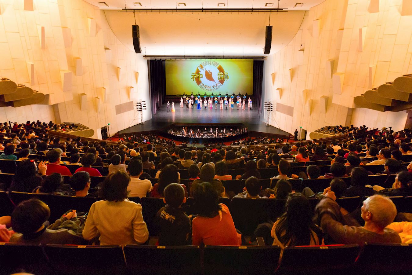 | 【明慧网二零一七年三月二十三日】(明慧记者苏容、孙柏、郑语焉综合报导)二零一七年神韵全球巡演以五个团的规模、近六个月的时间全球巡演,在北美、南美、亚洲、澳洲和欧洲的一百三十多座城市上演四百余场。神韵纽约艺术团于一月二十六日起风靡亚洲,历经日本、韩国,于二月十五日抵达台湾为时一个多月的演出,于三月二十一日在观众的热烈掌声中圆满落幕。 神韵的熠熠光彩,让台湾的初春更显得生机盎然。神韵在台湾巡演横跨七大城市演出三十五场,场场爆满,吸引五万多人次入场观赏,创下台湾艺文界一票难求的“神韵传奇”。来自中外的精英盛赞神韵出类拔萃的艺术美学与出神入化的演出,以中国古典舞带领观众神游历朝历代中土大地,展示真理与神性,启发人的慈善天性,同时感佩神韵艺术总监的非凡智慧。  图1:三月十七日晚间,神韵纽约艺术团在高雄文化中心演出,场场爆满,创下台湾艺文界一票难求的“神韵传奇”。 |