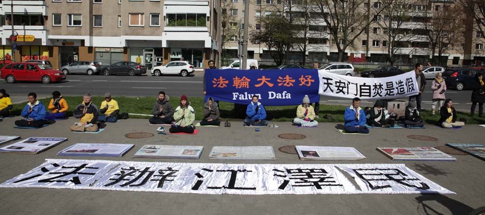 【明慧网二零一七年四月二十六日】二零一七年四月二十三日,来自波兰各地的部份法轮功学员在华沙中使馆门前和平请愿,以此纪念“四二五”上万名法轮功学员和平大上访十八周年,呼吁波兰政府和民众了解法轮功的真相,共同制止中共对法轮功的迫害。波兰电视台(Telewizja Polska. TVP3)前来现场采访,并当天晚上播出。 图1~2:波兰法轮功学员在华沙中使馆门前和平请愿,纪念“四二五”十八周年。 |