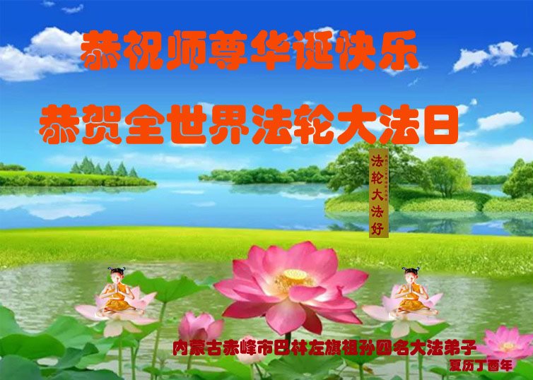 内蒙古赤峰市巴林左旗一家四名大法弟子恭祝师尊生日快乐!恭贺全世界法轮大法日!