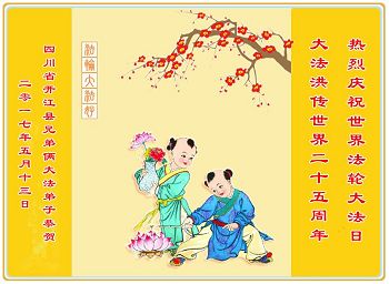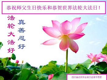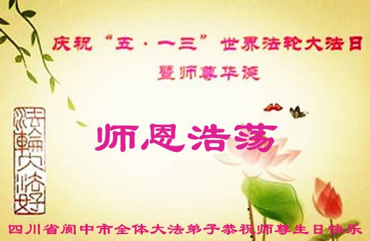 四川省一女大法弟子恭祝慈悲伟大的恩师生日快乐!恭贺“五·一三”世界法轮大法日暨大法洪传世界二十五周年!