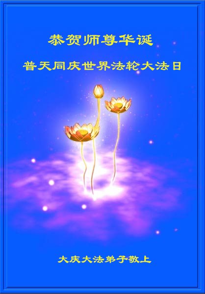 黑龙江省大庆市肇源县古龙镇一大法弟子恭贺世界法轮大法日!恭祝师父生日快乐!