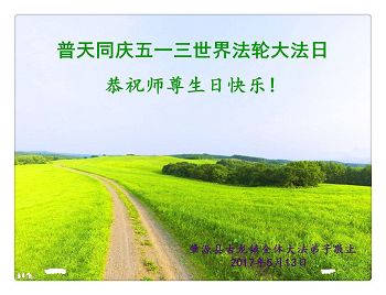 【明慧网二零一七年五月十日】 黑龙江省大庆市卧里屯大法弟子同庆5.13世界法轮大法日!恭祝师尊传法二十五周年!