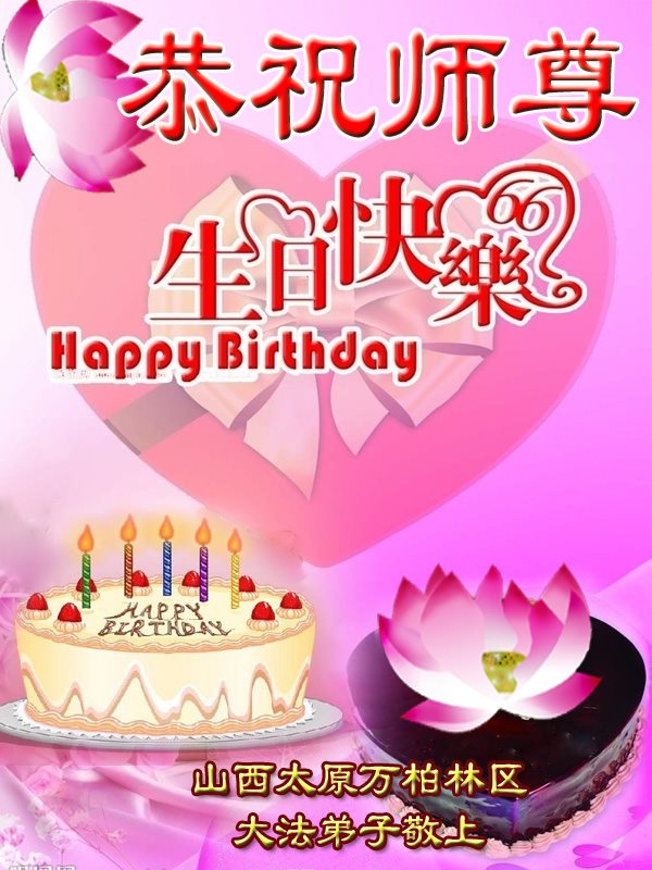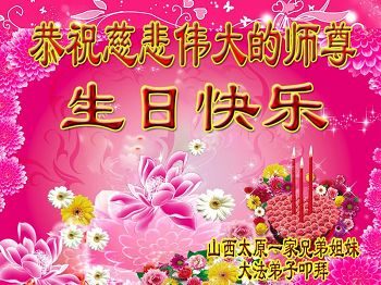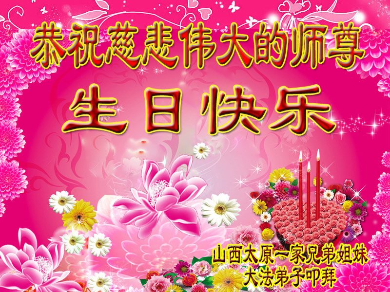 山西太原一家兄弟姐妹大法弟子恭祝慈悲伟大的师尊生日快乐!