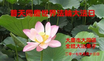 大庆市山西省大同区全体大法弟子普天同庆世界法轮大法日!