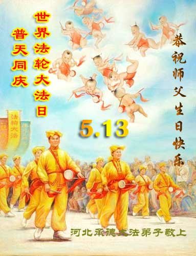 在这正法的最后时刻弟子一定要严格要求自己,听师父的话,做好大法弟子应该做的事情。 河北承德大法弟子恭贺世界法轮大法日暨祝师尊生日快乐!