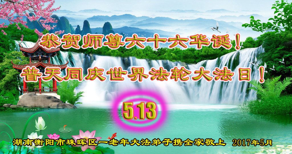湖南省衡阳市珠晖区一大法弟子全家恭祝师尊华诞!普天同庆世界法轮大法日!