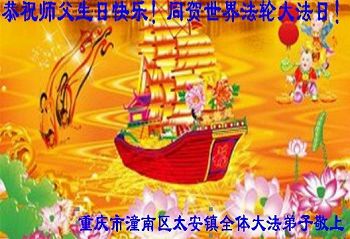 重庆市潼南区太安镇全体大法弟子恭祝慈悲伟大的师尊生日快乐!