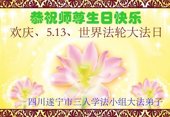 四川遂宁市三人学法小组大法弟子恭祝师尊生日快乐!欢庆513世界法轮大法日!
