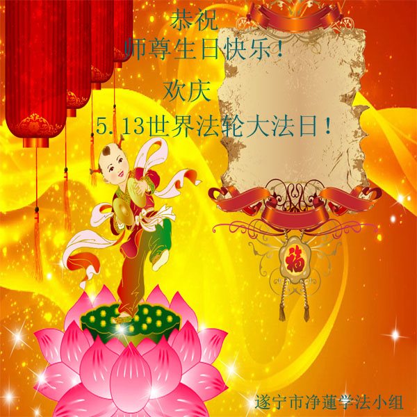 四川省遂宁净莲学法小组恭祝师尊生日快乐!欢庆513世界法轮大法日!