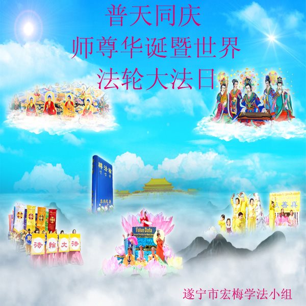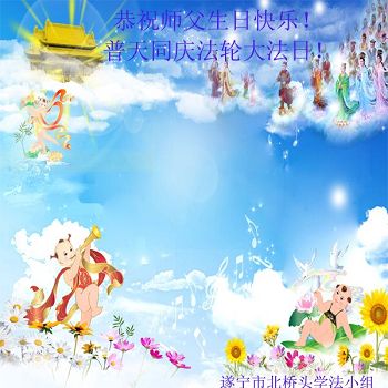 四川省遂宁北桥头学法小组恭祝师父生日快乐!普天同庆法轮大法日!