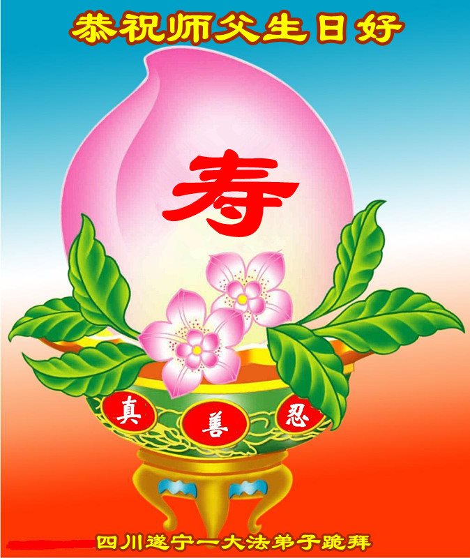 师父辛苦了!感谢恩师慈悲救度!弟子抓紧时间做好三件事,圆满随师返! 四川遂宁市一大法弟子恭祝师父生日快乐!