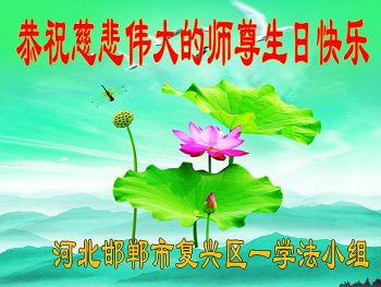 师父辛劳了!我们一定会珍惜师尊用巨大承受、无量付出所换来的时间。在这有限的、最后的时间里,会更加努力,听师尊的话,修好自己,形成整体,快救人、多救人。不辱使命、兑现誓约,回报师尊的慈悲救度之恩! 河北邯郸市复兴区一学法小组恭祝慈悲伟大的师尊生日快乐!