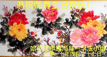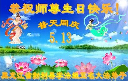 黑龙江省哈尔滨市通河县一学法小组大法弟子恭祝师尊生日快乐!