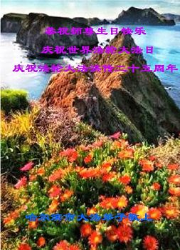 黑龙江省哈尔滨一老年大法弟子恭祝师尊生日快乐!庆祝世界法轮大法日暨大法洪传二十五周年!