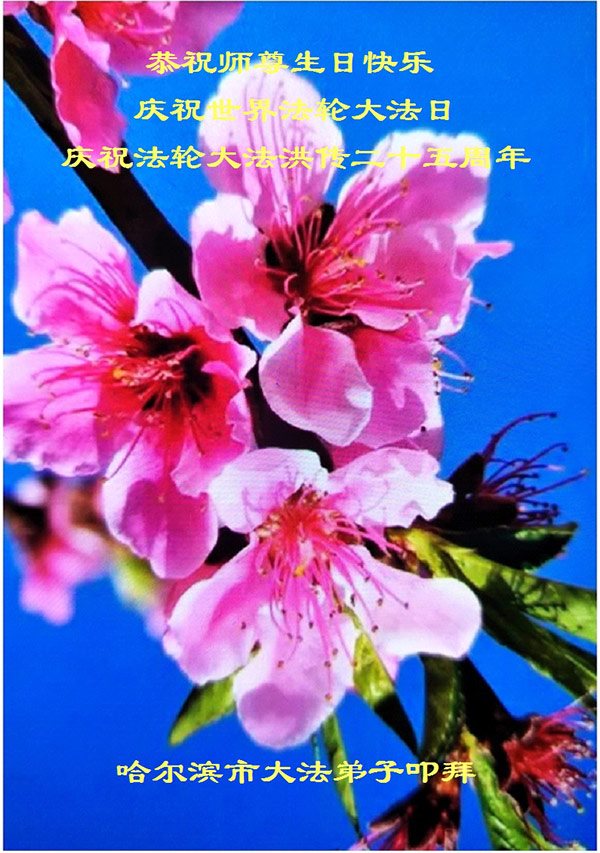 黑龙江省哈尔滨大法弟子恭祝师尊生日快乐!庆祝世界法轮大法日暨大法洪传二十五周年!